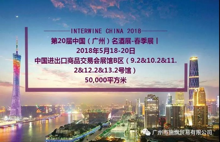 第20届中国(广州)国际名酒展于2018年05月18日在亚洲最大展馆-中国广州进出口商品交易会琶洲展馆B区隆重开幕!同期,施旗名庄春季酒展站于施旗总部-保利世贸G座空中品酒阁同步进行!